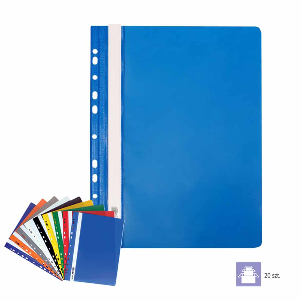 Boczna perforacja pozwala na łatwe wpięcie skoroszytu do segregatora z dowolnym mechanizmem, co zwiększa możliwości organizacji i archiwizacji dokumentów. Wewnętrzna blaszka i wąs o długości 16,5 cm umożliwiają bezpieczne przechowywanie dokumentów o grubości do 20 mm.