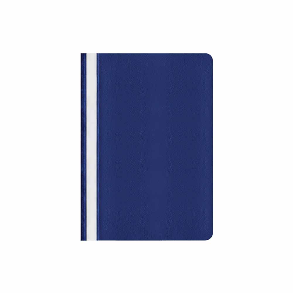 Skoroszyt wyposażony jest w wymienny, papierowy pasek do opisu, który ułatwia identyfikację zawartości. Dwa wycięcia umożliwiają szybkie i łatwe wysuwanie paska, co dodatkowo poprawia funkcjonalność. Zaokrąglone rogi obu okładek zwiększają komfort użytkowania i zapobiegają uszkodzeniom innych dokumentów.