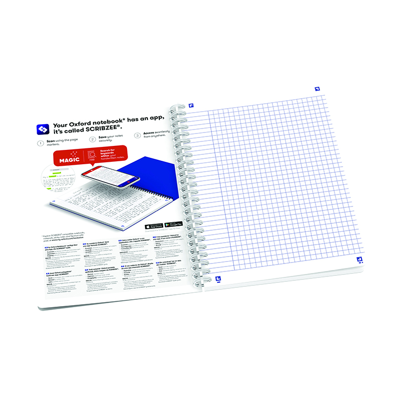 - specjalna liniatura z tagami umożliwia skanowanie notatek za pomocą aplikacji Scribzee