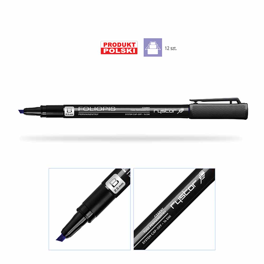 Tusz w foliopisie Rystor B schnie szybko, nie rozmazuje się, jest wodoodporny i odporny na działanie promieni słonecznych. Dzięki temu oznaczenia są trwałe i wyraźne, a intensywność barw pozostaje niezmieniona.