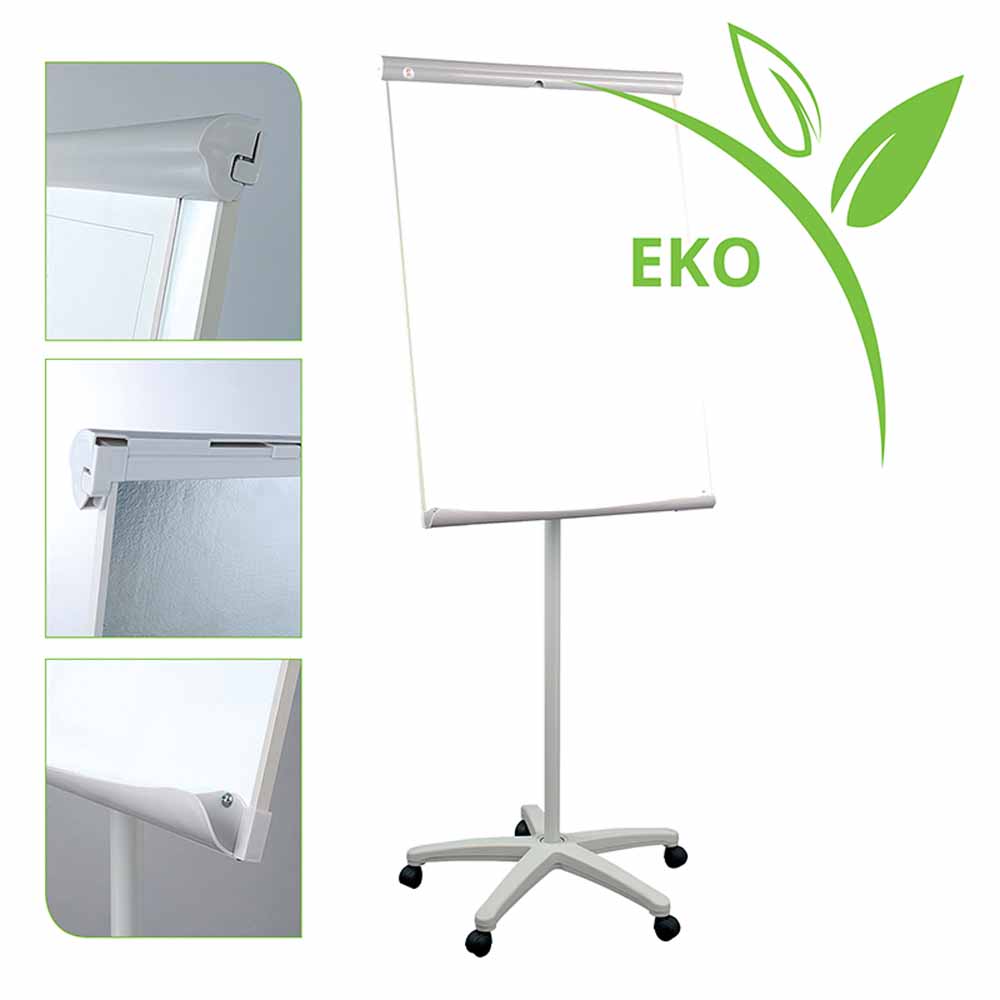 flipchart mobilny z tablicą o powierzchni suchościeralno-magnetycznej kąt nachylenia tablicy 15° stabilna, lekka konstrukcja na kółkach tablica lakierowana w aluminiowej ramie regulowana wysokość do max 219 cm +/-2cm minimalna wysokość: 174 cm +/-2cm wyposażony w półkę na markery, gąbkę, magnesy zapewnia dobry kontrast kolorów wyprodukowane w fabryce z certyfikatem ISO9001:2015 oraz audytem praktyk socjalnych BSCI produkt jest wytworzony z surowca z certyfikatem FSC produkt pakowany jednostkowo w karton ochronny 4 haki do montażu bloków posiada 5 blokowanych kółek gąbka i 3 magnesy w zestawie 2 ramiona wysuwane obustronnie rozmiar tablicy: 70x100cm tablica pakowana pojedynczo w opakowanie kartonowe gwarancja: 2 lata