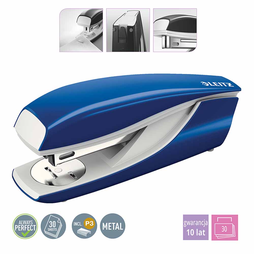 - specjalnie skonstruowana dźwignia redukuję siłę nacisku potrzebną do zszycia dokumentów do 50%