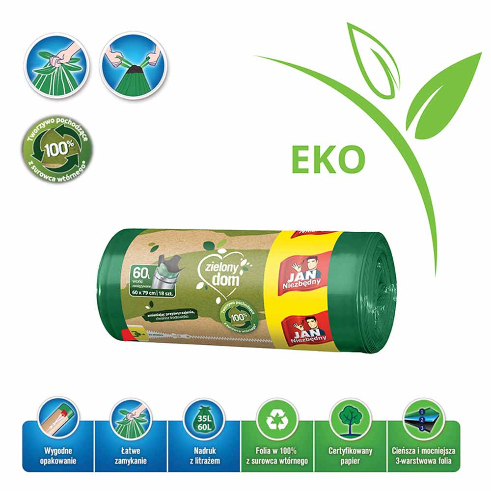 Folia użyta do produkcji worków pochodzi w 100% z recyklingu.