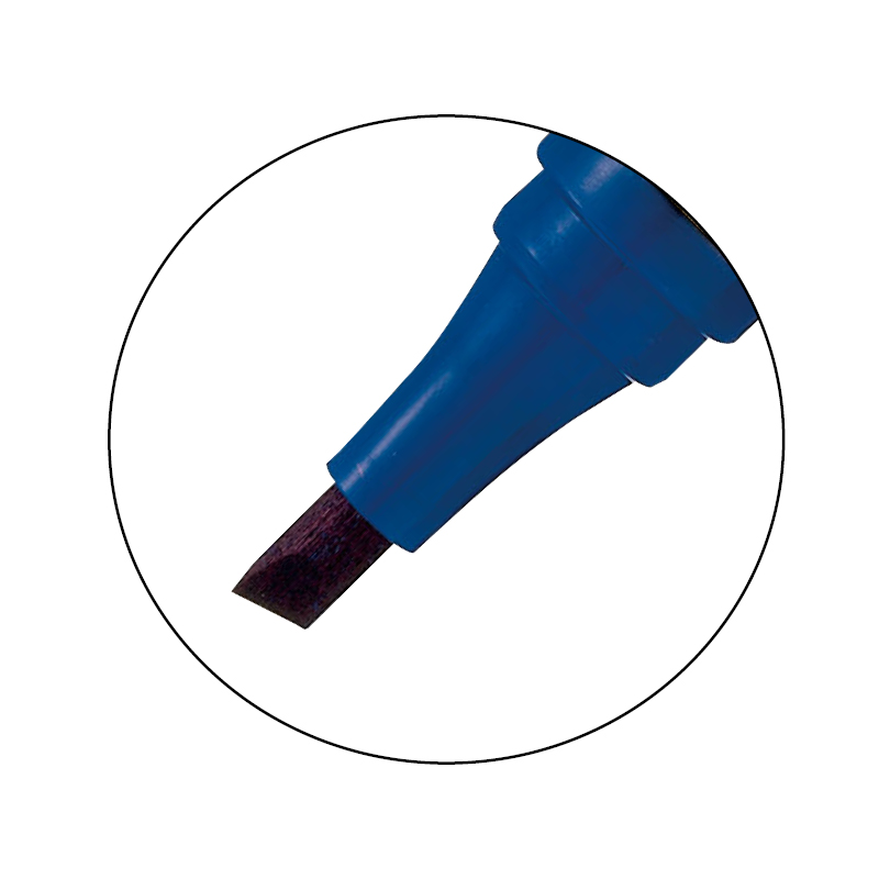 Marker Pentel N860 jest wyposażony w ściętą końcówkę z włókna akrylowego, która zapewnia wyraźne i zróżnicowane pisanie. Grubość linii pisania wynosi od 1,2 do 4,5 mm, co pozwala na tworzenie zarówno cienkich, jak i grubych oznaczeń.