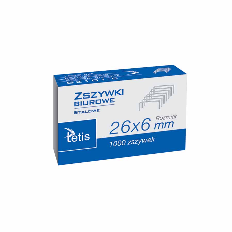 wyprodukowane ze stali wysokiej jakości w procesie produkcyjnym przycinane są pod kątem tworząc ostre końcówki charakteryzują się dużą twardością galwanizowane cynkiem 12g/m2 zdolność zszywania: do 50 kartek (80 g/m2) rozmiar:23/8 1000 sztuk w j.s. kolor srebrny