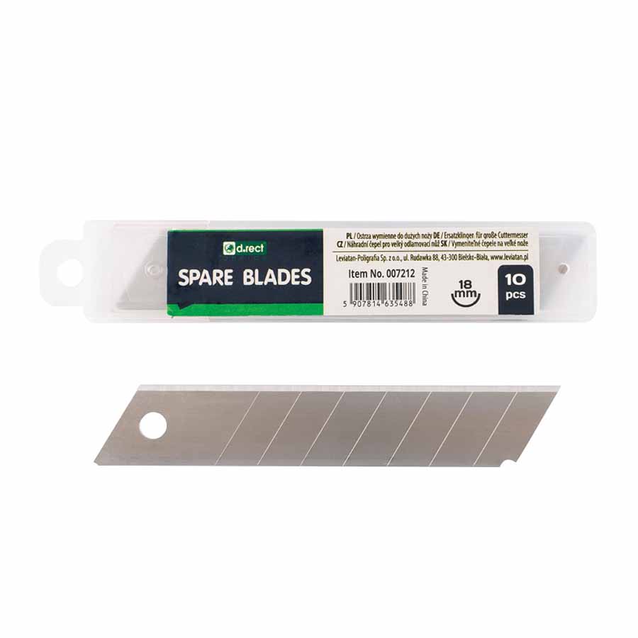 nóż biurowy do rozcinania różnych materiałów wysuwane 7-częściowe ostrze z możliwością odłamywania stępionych części blokada unieruchamiająca ostrze obudowa wykonana z polistyrenu (żółte elementy) i ABS'u (niebieskie elementy) ostrze wykonane ze stali hartowanej szerokość ostrza: 18mm długość ostrza: 100mm kolor niebiesko-żółty
